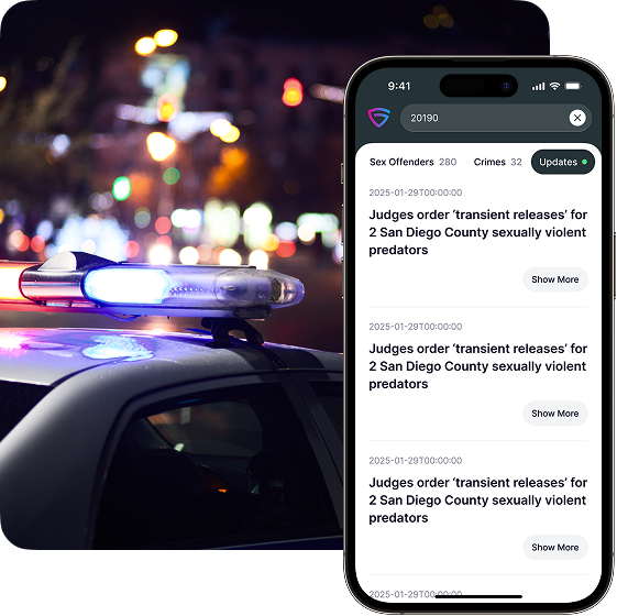 - Offender Monitoring — See if registered offenders or high-risk individuals are active in your vicinity.